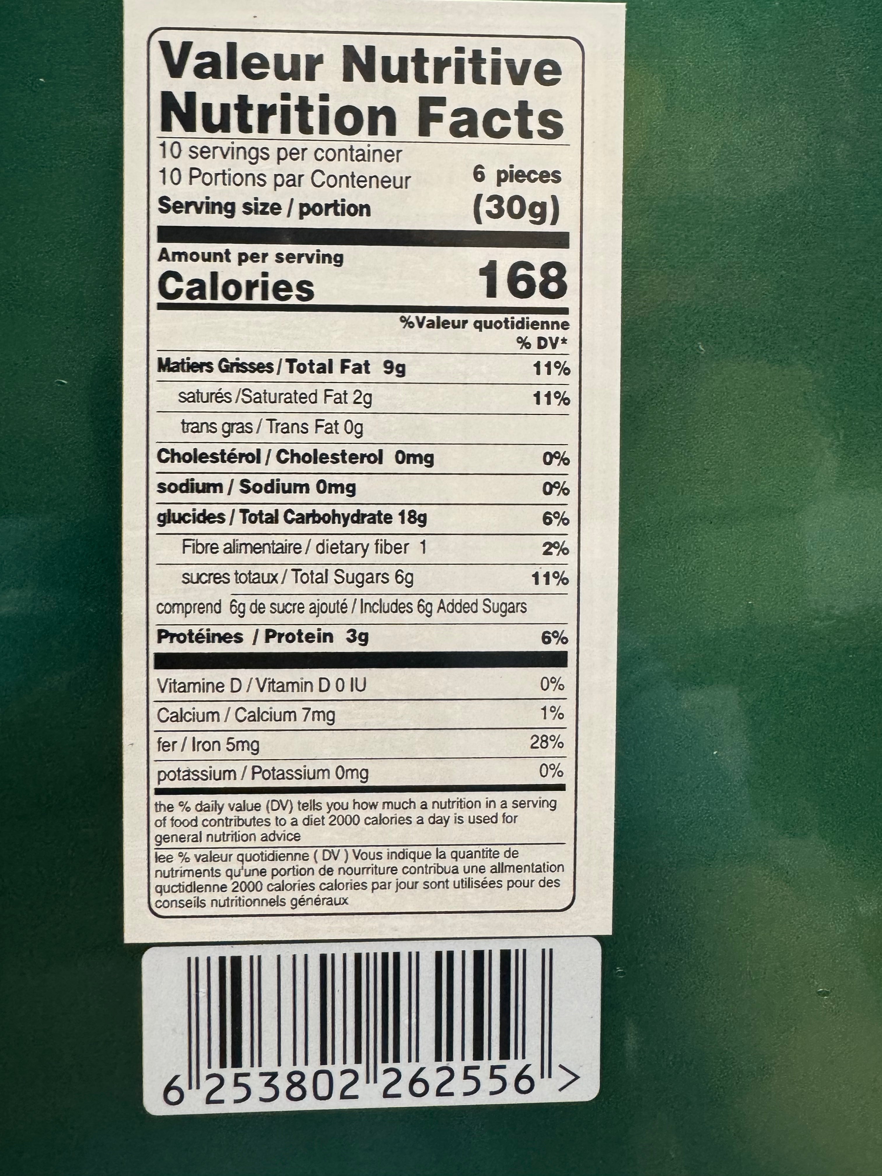 Nutrition (per 30g / ~6 pieces):